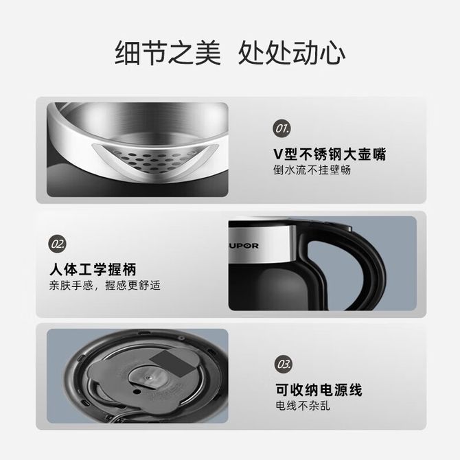 组合销售 产品介绍 产品规格 售后服务 产品咨询 发现好货 苏泊尔(SUPOR)电水壶 1.7L 不锈钢/YL SW-17S13A 5700 里程 志高/Chigo 电水壶烧水壶1.8L大容量电热水壶双层防烫自动断电家用烧水开水壶不锈钢 电水壶 DC-A18F 1900 里程 美的/Midea 电热水壶家用大容量烧水壶热水壶双层防烫电水壶304不锈钢内胆自动断电分离式拔盖 MK-SH15X1-102 3000 里程 小熊/Bear 电水壶家用烧水壶 不锈钢自动断电恒温热水壶保温一体电热水壶1.5L容量 3500 里程 小熊/Bear 烧水壶电水壶热水壶电热水壶开水壶304不锈钢内胆双层防烫1.5L大容量ZDH-Q15U8 3000 里程