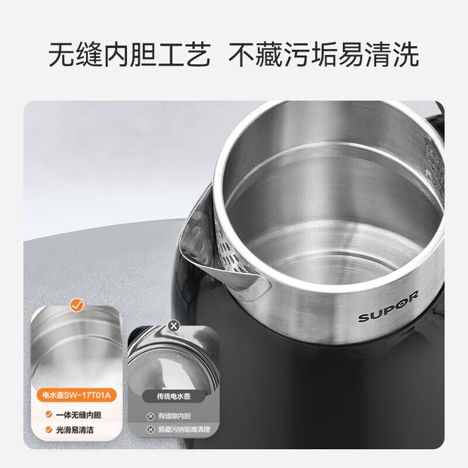 苏泊尔(SUPOR) 电水壶SW-17T01A 热水壶1.7L电热水壶 316L不锈钢烧水壶 保温恒温开水壶全钢无缝 热水壶1.7L电热水壶 316L不锈钢烧水壶 保温恒温开水壶全钢无缝 兑换价格 10900 里程 会员卡别 终身白金卡 白金卡 金卡 银卡 普通卡 儿童卡 服务 由 纳华优选 发货并提供售后 颜色: 黑色 购买数量: 件 库存件 配送地址: 立即购买 加入购物车 成功添加到购物车 关闭 购物车共有 种商品 总金额为: