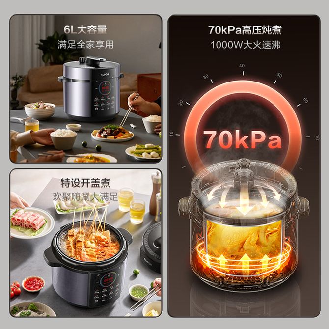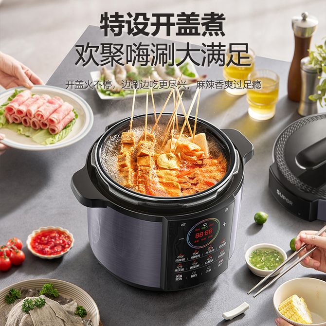 组合销售 产品介绍 产品规格 售后服务 产品咨询 发现好货 苏泊尔(SUPOR)电压力锅 6升大容量 智能触控 球釜双胆 开盖收汁 一键排压 SY-60YC8001Q 高压锅 16900 里程 美的/Midea 电压力锅家用5L大容量多功能高压锅双胆一键收汁智能预约不粘电高压锅电饭锅煮粥煲汤锅 一锅双胆【一键收汁入味】 YL50M1-702 10600 里程 苏泊尔(SUPOR) 5L电压力锅家用电高压锅双胆高压电饭锅煮饭智能预约 SY-50YC8186 11300 里程 美的/Midea 电压力锅 【一锅双胆】5L全自动家用智能预约 上蒸下煮 不粘双胆煲汤炖肉 YL50Q3-451 10900 里程 美的/Midea 电压力锅 高压锅家用电压力煲智能预约电饭煲大容量多功能定时预约电饭煲3-8人单胆旋钮款4L MY-E4809 8700 里程