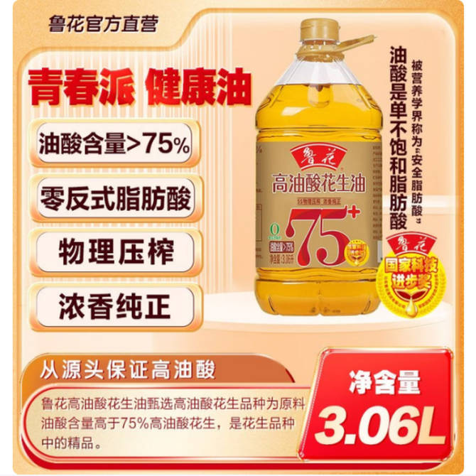 鲁花 高油酸花生油3.06L 5S物理压榨 食用油 油酸含量>75% 油酸含量>75% 规格 3.06L*1桶,新旧包装随机发货 兑换价格 9300 里程 会员卡别 终身白金卡 白金卡 金卡 银卡 普通卡 儿童卡 服务 由 一间食品馆 发货并提供售后 油品规格: 3.06L 购买数量: 件 库存件 配送地址: 立即购买 加入购物车 成功添加到购物车 关闭 购物车共有 种商品 总金额为: 组合销售 产品介绍 产品规格 售后服务 产品咨询 发现好货 长寿花 金胚玉米油食用油非转基因压榨一级 1.8L 2200 里程 珍佰粮菜籽油5L 5500 里程 福临门 一级大豆油900ML/瓶 优质家用食用油 1100 里程 长寿花金胚玉米油1.8L 2400 里程 金龙鱼 浓香花生油5L 大桶装物理压榨一级厨房烹饪炒菜植物油粮油家庭食用油 浓香花生油食用油 5000 里程