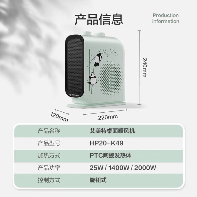 艾美特/Airmate 暖风机小型取暖器电暖器家用电暖气片电热风扇桌面办公室立卧两用熊发发宝宝速热暖风机 绿色 小熊猫款HP20-K49 即开即热 轻音送暖 PTC陶瓷发热 小巧便携 立卧两用 兑换价格 5200 里程 会员卡别 终身白金卡 白金卡 金卡 银卡 普通卡 儿童卡 服务 由 优米酷家电生活馆 发货并提供售后 颜色: 绿色 购买数量: 件 库存件 配送地址: 立即购买 加入购物车 成功添加到购物车 关闭 购物车共有 种商品 总金额为: