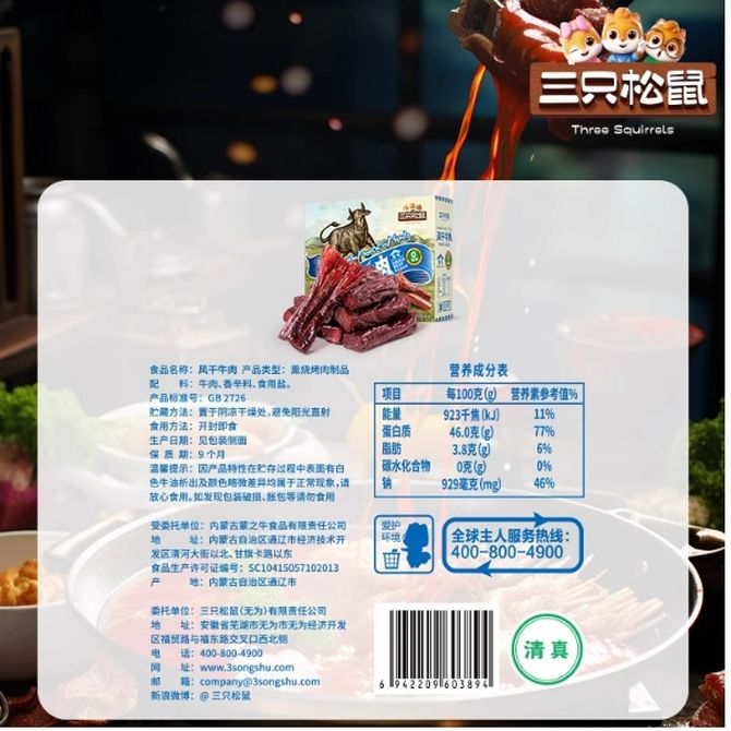 组合销售 产品介绍 产品规格 售后服务 产品咨询 发现好货 蒙都 风干牛肉干 500g (原味/五香/孜然/香辣)下单备注口味 新老包装随机 7000 里程 蒙都 酱牛肉200g*2袋 卤牛肉 熟食 内蒙古特产 五香真空包装熟牛肉 4100 里程 百草味 白芝麻猪肉脯100g 休闲零食肉干肉脯 1100 里程 百草味 原切牛肉片50g*1袋 牛肉干休闲零食 特产小吃肉干 1500 里程 三只松鼠(Three Squirrels) 蜀香牛肉麻辣味肉脯即食卤味牛肉 100gx2袋 1300 里程