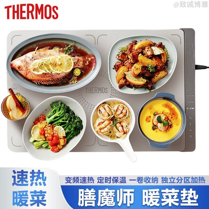 膳魔师(THERMOS) 暖菜垫热菜板轻薄设计餐桌加热垫饭菜保温神器饭菜保温板速热暖菜定时保温