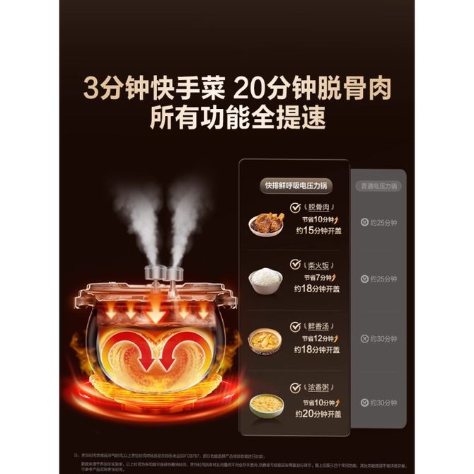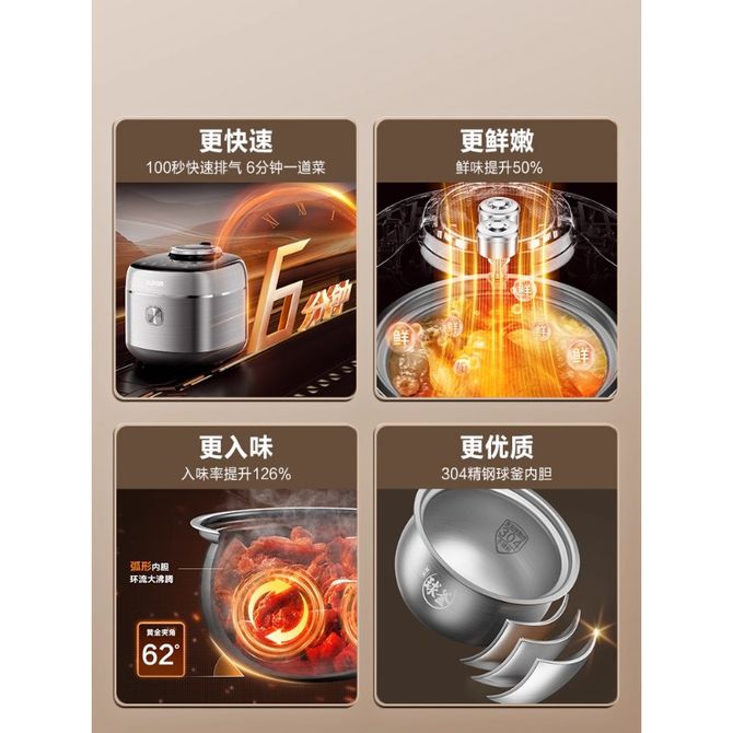 组合销售 产品介绍 产品规格 售后服务 产品咨询 发现好货 苏泊尔(SUPOR)电压力锅 6升大容量 智能触控 球釜双胆 开盖收汁 一键排压 SY-60YC8001Q 高压锅 16900 里程 苏泊尔(SUPOR) 5L电压力锅家用电高压锅双胆高压电饭锅煮饭智能预约 SY-50YC8186 11300 里程 美的/Midea 电压力锅 高压锅家用电压力煲智能预约电饭煲大容量多功能定时预约电饭煲3-8人单胆旋钮款4L MY-E4809 8700 里程 美的/Midea 电压力锅 【双胆】5升大容量电饭煲全自动智能饭锅多功能高压锅 24小时智能预约 MY-E523 10400 里程 美的/Midea 提鲜系列电压力锅5升家用双胆高压锅 全自动智能预约多功能YL50Q3-451 10900 里程