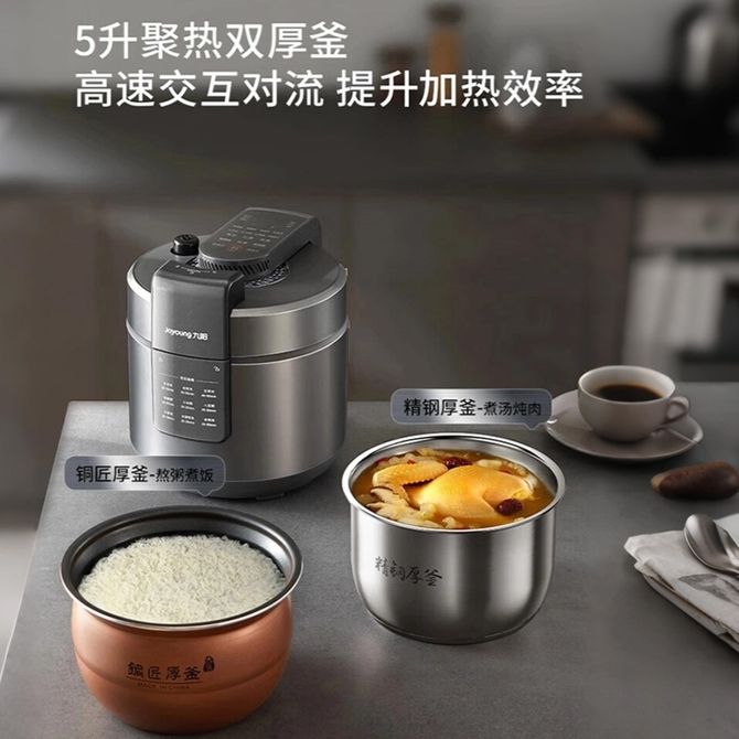 九阳/Joyoung 电压力锅电高压锅5L升一锅双胆电压力煲风电饭煲电饭锅电高压煲 5L全家享 双胆厚釜,降压免排气|沸腾锁鲜 |一锅双胆 兑换价格 21700 里程 会员卡别 终身白金卡 白金卡 金卡 银卡 普通卡 儿童卡 服务 由 广西自贸区京通桂达科技发展有限公司 发货并提供售后 颜色: 其他 购买数量: 件 库存件 配送地址: 立即购买 加入购物车 成功添加到购物车 关闭 购物车共有 种商品 总金额为: 组合销售 产品介绍 产品规格 售后服务 产品咨询 发现好货 苏泊尔(SUPOR)电压力锅 6升大容量 智能触控 球釜双胆 开盖收汁 一键排压 SY-60YC8001Q 高压锅 16900 里程 美的/Midea 电压力锅家用5L大容量多功能高压锅双胆一键收汁智能预约不粘电高压锅电饭锅煮粥煲汤锅 一锅双胆【一键收汁入味】 YL50M1-702 10600 里程 苏泊尔(SUPOR) 5L电压力锅家用电高压锅双胆高压电饭锅煮饭智能预约 SY-50YC8186 11300 里程 美的/Midea 电压力锅 【一锅双胆】5L全自动家用智能预约 上蒸下煮 不粘双胆煲汤炖肉 YL50Q3-451 10900 里程 美的/Midea 电压力锅 高压锅家用电压力煲智能预约电饭煲大容量多功能定时预约电饭煲3-8人单胆旋钮款4L MY-E4809 8700 里程