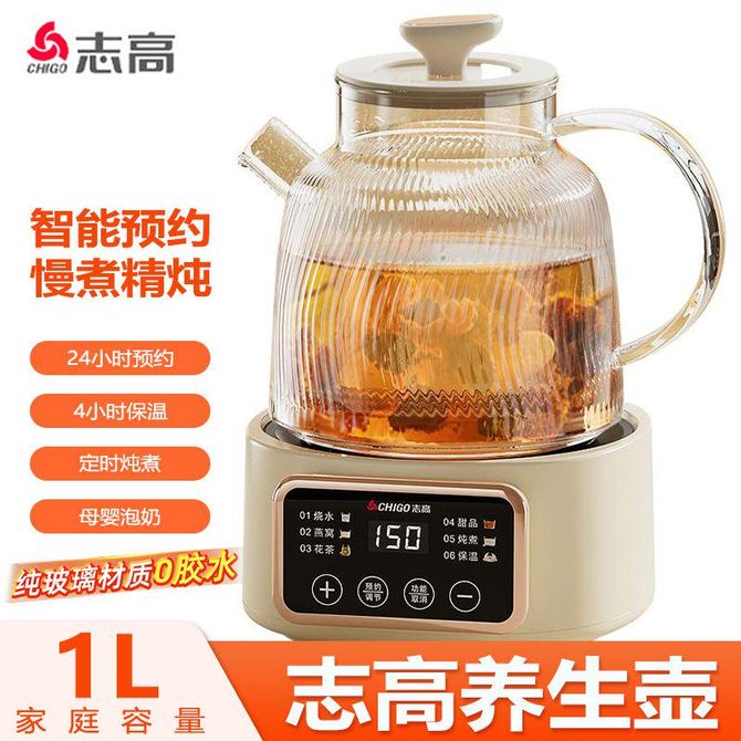 志高(CHIGO) 全玻璃养生壶1L迷你烧水壶保温一体恒温电热水壶煮茶器0胶水可炖煮 6大菜单功能简单制作美饮,3D面式加热盘均匀受热 兑换价格 4800 里程 会员卡别 终身白金卡 白金卡 金卡 银卡 普通卡 儿童卡 服务 由 中农创家电生活馆 发货并提供售后 颜色: 其他 购买数量: 件 库存件 配送地址: 立即购买 加入购物车 成功添加到购物车 关闭 购物车共有 种商品 总金额为: