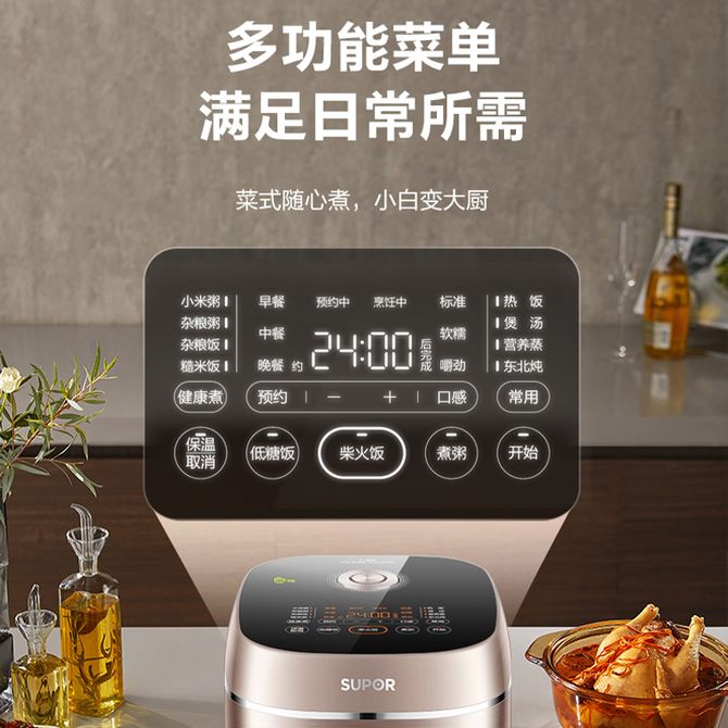 组合销售 产品介绍 产品规格 售后服务 产品咨询 发现好货 苏泊尔(SUPOR) 电饭煲电饭锅4L大容量 不粘内胆4-6个人前置大屏面板24小时预约上蒸下煮多功能家用智能SF40FC0063 8300 里程 奥克斯/AUX 电饭煲3L电饭锅 2-3人小型预约智能电饭煲VK-309F2 5100 里程 苏泊尔(SUPOR) 迷你电饭煲家用电饭锅2-3人3L小容量蓝钻不粘内胆快煮饭功能智能预约小型多功能SF30FC0187 6100 里程 美菱/MELNG 电饭煲3L触控式预约定时MF-LC3005 4400 里程 苏泊尔(SUPOR) 煮饭煮粥智能预约多功能一锅多用小型微压电饭锅30FC0187 7200 里程