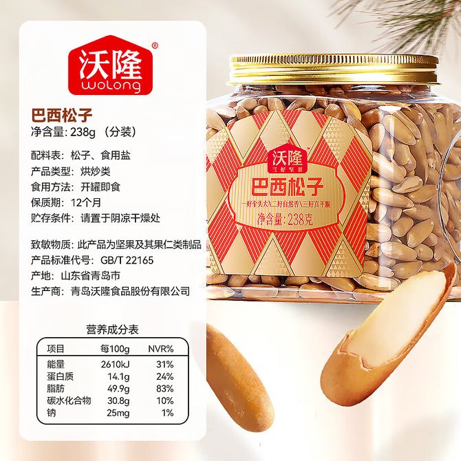 沃隆 手剥松子238g罐装手剥巴西松子 长粒大颗粒松子 手剥松子238g罐装手剥巴西松子 兑换价格 5700 里程 会员卡别 终身白金卡 白金卡 金卡 银卡 普通卡 儿童卡 服务 由 中优盈信品质生活馆 发货并提供售后 规格: 罐装 购买数量: 件 库存件 配送地址: 立即购买 加入购物车 成功添加到购物车 关闭 购物车共有 种商品 总金额为: