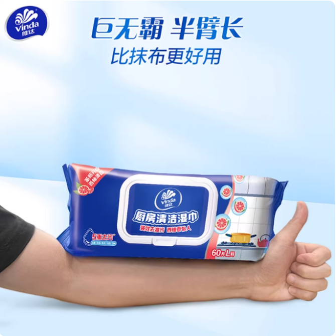 维达 厨房湿巾 60片单包 70克高克重厨房用强效去油污 加大加厚