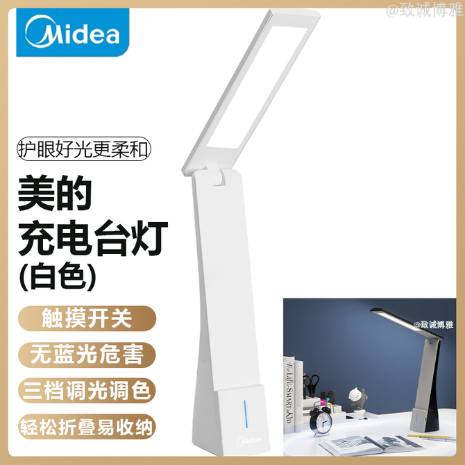 美的/Midea 护眼台灯家用阅读台灯学习好伴侣三档亮度三档色温书桌台灯无蓝光危害 (详情共用,此款为白色) 触摸开关 无蓝光危害 三档调光调色 轻松折叠易收纳 兑换价格 3100 里程 会员卡别 终身白金卡 白金卡 金卡 银卡 普通卡 儿童卡 服务 由 北京致诚博雅贸易有限公司 发货并提供售后 颜色: 其他 购买数量: 件 库存件 配送地址: 立即购买 加入购物车 成功添加到购物车 关闭 购物车共有 种商品 总金额为: 组合销售 产品介绍 产品规格 售后服务 产品咨询 发现好货 雅格yage 台灯 充插电两用 可触摸调光三档 LED灯宿舍阅读小夜灯 折叠款 180度自由调节 1800 里程 美的(Midea)酷毙灯 学生学习阅读灯吸附式小夜灯磁吸灯床头灯橱柜灯宿舍神器usb充电led台灯 2100 里程 美的(Midea)护眼台灯 国AA级LED插电阅读台灯 床头灯 MT-15F1 4800 里程 美的/Midea 台灯 35cm发光面 led护眼超亮酷毙灯充电式台灯大学生宿舍磁铁贴粘贴背胶寝室 明舍H2 3100 里程 飞利浦/Philips 品志 LED充电护眼台灯 8700 里程
