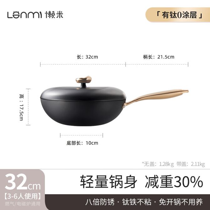 懒米 【升级0涂层钛铁锅】 32cm 可用钢铲0涂层安全健康 精铁锅有钛无涂层炒锅家用炒菜锅轻量钛铁不粘滋滋锅电磁炉燃气用 兑换价格 13900 里程 会员卡别 终身白金卡 白金卡 金卡 银卡 普通卡 儿童卡 服务 由 人人余厨具专营店 发货并提供售后 颜色: 黑色 购买数量: 件 库存件 配送地址: 立即购买 加入购物车 成功添加到购物车 关闭 购物车共有 种商品 总金额为: