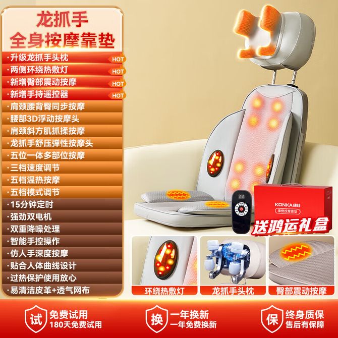 康佳/Konka 多功能按摩靠垫KAMD-0921-T【9代至尊款+遥控】高配热敷灯龙抓手 颈部自由调节颈椎按摩器肩颈腰背臀部全身躺垫生日礼物父亲节礼物实用送爸爸妈妈 高配热敷灯+龙抓手+颈部自由调节 兑换价格 25000 里程 会员卡别 终身白金卡 白金卡 金卡 银卡 普通卡 儿童卡 服务 由 纳华优选 发货并提供售后 颜色: 灰色 购买数量: 件 库存件 配送地址: 立即购买 加入购物车 成功添加到购物车 关闭 购物车共有 种商品 总金额为: