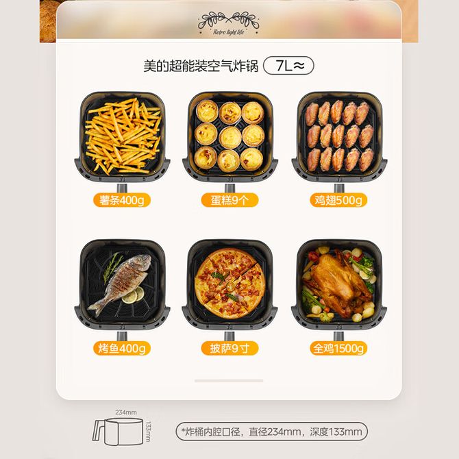组合销售 产品介绍 产品规格 售后服务 产品咨询 发现好货 苏泊尔(SUPOR)空气炸锅 家用多功能4.2L大容量 烤箱薯条机 无油烟电炸锅 大功率 无油低脂煎炸锅KJ42D811 6500 里程 苏泊尔(SUPOR)空气炸锅家用3L大容量电炸锅 蒸汽嫩炸多功能无油烟煎炸薯条机烤箱KD30DQ815 21700 里程 美的/Midea 空气炸锅 家用5升可视炸锅金属内腔体微蒸汽多功能智能双旋控温电炸锅 KZE5089 10900 里程 美的/Midea 空气炸锅 可视 不用翻面 金属内腔 蒸汽嫩炸 三档烘烤风力 5L KZC5089 10700 里程 小熊/Bear 空气炸锅 4D漩烤不用翻面 全自动 5L实用大容量 可视 蒸汽嫩炸 控油脱脂 炸烤箱一体机 9100 里程