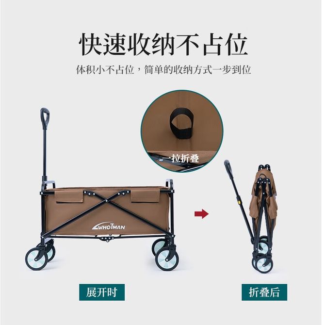 沃特曼 户外折叠野餐车超大容量野营车露营车营地车推车拉杆车 升级款-咖色【7吋轮胎】150L 尺寸:84x46x56cm 碳素钢,牛津布 兑换价格 15700 里程 会员卡别 终身白金卡 白金卡 金卡 银卡 普通卡 儿童卡 服务 由 劲芳体育生活馆 发货并提供售后 颜色: 其他 购买数量: 件 库存件 配送地址: 立即购买 加入购物车 成功添加到购物车 关闭 购物车共有 种商品 总金额为: