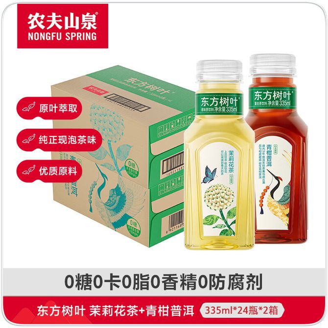 农夫山泉 东方树叶335ml*24瓶两箱组合装 东方树叶茉莉花茶335ml*24瓶+青柑普洱茶335ml*24瓶整箱0糖0脂0卡 兑换价格 7700 里程 会员卡别 终身白金卡 白金卡 金卡 银卡 普通卡 儿童卡 服务 由 全食行 发货并提供售后 规格: 组合 购买数量: 件 库存件 配送地址: 立即购买 加入购物车 成功添加到购物车 关闭 购物车共有 种商品 总金额为: