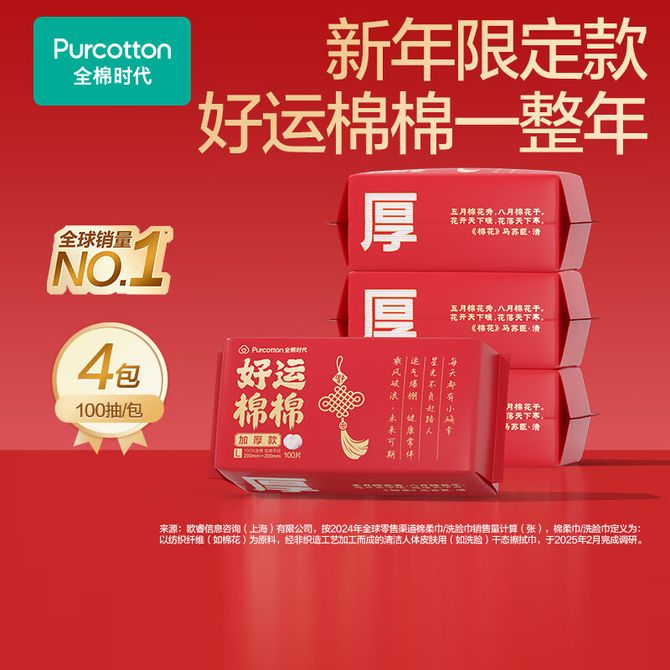 全棉时代/PURCOTTON 洗脸巾100抽*4包100%棉柔巾加厚一次性毛巾新年款 200mm*200mm 新年款全棉棉柔巾 一次性洗脸巾 兑换价格 3800 里程 会员卡别 终身白金卡 白金卡 金卡 银卡 普通卡 儿童卡 服务 由 松升个护专营店 发货并提供售后 包装数量: 4包 购买数量: 件 库存件 配送地址: 立即购买 加入购物车 成功添加到购物车 关闭 购物车共有 种商品 总金额为: