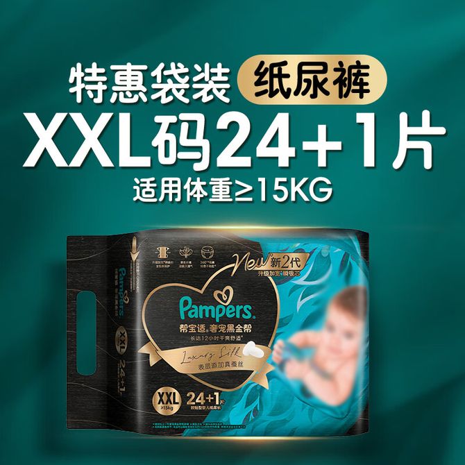 帮宝适 奢宠黑金帮纸尿裤 加加大XXL码婴儿尿不湿 (24+1)片 新2代黑金帮 添加真蚕丝 顶配专为新生儿 兑换价格 6000 里程 会员卡别 终身白金卡 白金卡 金卡 银卡 普通卡 儿童卡 服务 由 上海耀嬉网络科技有限公司 发货并提供售后 包装数量: 单包 购买数量: 件 库存件 配送地址: 立即购买 加入购物车 成功添加到购物车 关闭 购物车共有 种商品 总金额为: