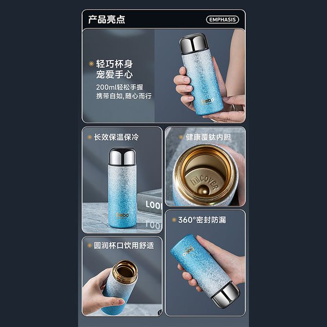 德铂(Debo) 凯诺保温杯200mL 办公室迷你小巧口袋杯户外便携随身杯 冰花渐变蓝 (此款为200mL保温杯冰花渐变蓝 详情共用)轻巧杯身,长效保温保冷,健康覆钛内胆,360°密封防漏 兑换价格 2600 里程 会员卡别 终身白金卡 白金卡 金卡 银卡 普通卡 儿童卡 服务 由 广西桂雅文化传媒有限公司 发货并提供售后 颜色: 其他 购买数量: 件 库存件 配送地址: 立即购买 加入购物车 成功添加到购物车 关闭 购物车共有 种商品 总金额为: