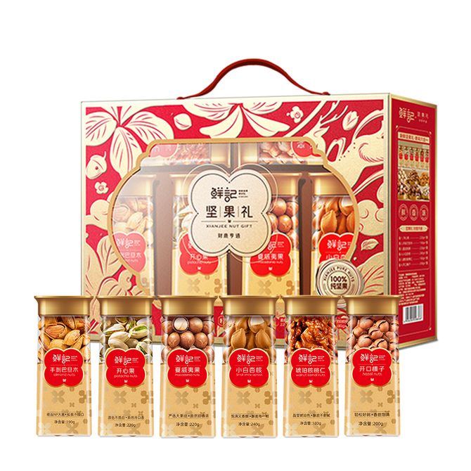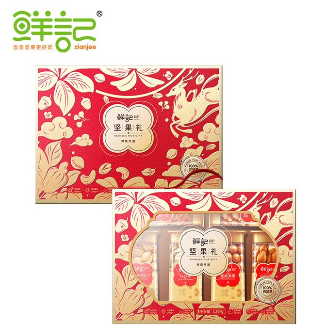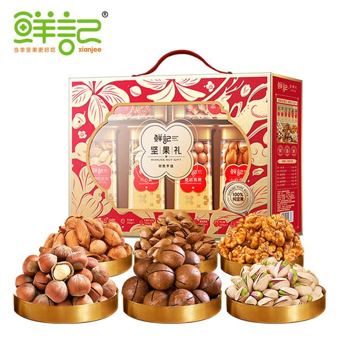 鲜记 坚果礼盒 财鹿亨通1.25kg盒 年货礼盒