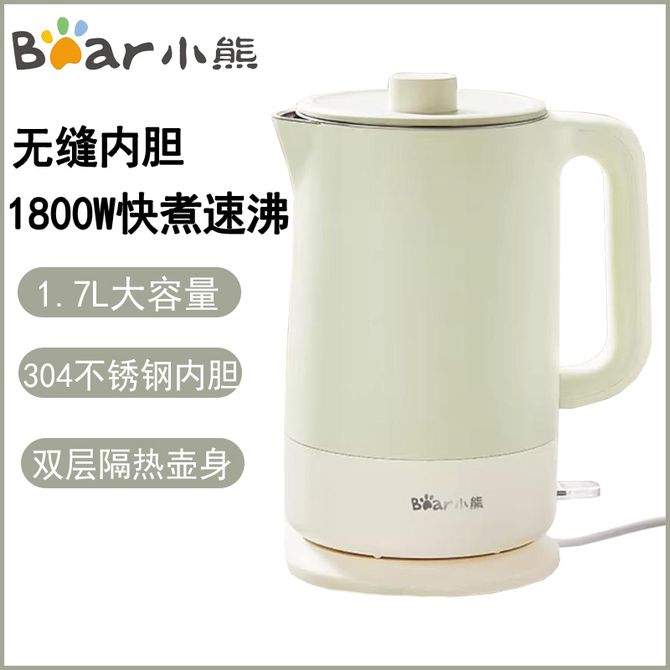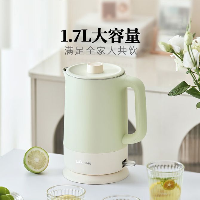 小熊/Bear 电水壶 烧水壶 热水壶电热水壶304无缝内胆双层防烫电水壶1.7L大容量 ZDH-G17D3 1.7L容量;304不锈钢内胆;分离式壶盖; 兑换价格 3500 里程 会员卡别 终身白金卡 白金卡 金卡 银卡 普通卡 儿童卡 服务 由 小枫叶专营店 发货并提供售后 颜色: 绿色 购买数量: 件 库存件 配送地址: 立即购买 加入购物车 成功添加到购物车 关闭 购物车共有 种商品 总金额为: 组合销售 产品介绍 产品规格 售后服务 产品咨询 发现好货 苏泊尔(SUPOR)电水壶 1.7L 不锈钢/YL SW-17S13A 5700 里程 志高/Chigo 电水壶烧水壶1.8L大容量电热水壶双层防烫自动断电家用烧水开水壶不锈钢 电水壶 DC-A18F 1900 里程 美的/Midea 电热水壶家用大容量烧水壶热水壶双层防烫电水壶304不锈钢内胆自动断电分离式拔盖 MK-SH15X1-102 3000 里程 小熊/Bear 电水壶家用烧水壶 不锈钢自动断电恒温热水壶保温一体电热水壶1.5L容量 3500 里程 小熊/Bear 烧水壶电水壶热水壶电热水壶开水壶304不锈钢内胆双层防烫1.5L大容量ZDH-Q15U8 3000 里程