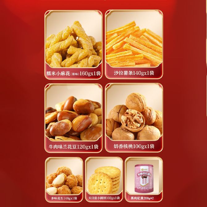 良品铺子 心意礼礼盒 休闲零食坚果炒货年货礼盒 春节节日送礼佳品 配置:心意礼礼盒1170g;奶香核桃100g、沙拉薯条140g、多味花生148g、牛肉味兰花豆120g、糯米小麻花(原味)160g、天日盐小圆饼102g、黑枸杞羹200g*2 兑换价格 3000 里程 会员卡别 终身白金卡 白金卡 金卡 银卡 普通卡 儿童卡 服务 由 壮乡优品生活馆 发货并提供售后 规格: 礼盒 购买数量: 件 库存件 配送地址: 立即购买 加入购物车 成功添加到购物车 关闭 购物车共有 种商品 总金额为: