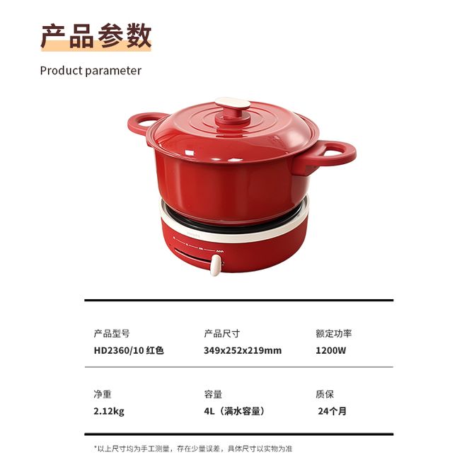 飞利浦/Philips 4L分体式电火锅HD2360/10 红色 4升容量 分体式设计 兑换价格 12600 里程 会员卡别 终身白金卡 白金卡 金卡 银卡 普通卡 儿童卡 服务 由 智磐电器专营店 发货并提供售后 颜色: 红色 购买数量: 件 库存件 配送地址: 立即购买 加入购物车 成功添加到购物车 关闭 购物车共有 种商品 总金额为: 组合销售 产品介绍 产品规格 售后服务 产品咨询 发现好货 苏泊尔(SUPOR)空气炸锅 家用多功能4.2L大容量 烤箱薯条机 无油烟电炸锅 大功率 无油低脂煎炸锅KJ42D811 6500 里程 苏泊尔(SUPOR)空气炸锅家用3L大容量电炸锅 蒸汽嫩炸多功能无油烟煎炸薯条机烤箱KD30DQ815 21700 里程 美的/Midea 空气炸锅 家用5升可视炸锅金属内腔体微蒸汽多功能智能双旋控温电炸锅 KZE5089 10900 里程 美的/Midea 空气炸锅 可视 不用翻面 金属内腔 蒸汽嫩炸 三档烘烤风力 5L KZC5089 10700 里程 小熊/Bear 空气炸锅 4D漩烤不用翻面 全自动 5L实用大容量 可视 蒸汽嫩炸 控油脱脂 炸烤箱一体机 9100 里程