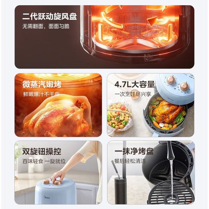 组合销售 产品介绍 产品规格 售后服务 产品咨询 发现好货 美的/Midea 空气炸锅 5L可视窗口免翻面电炸锅 双旋钮控时控温 食品接触不粘涂层 MF-KZE5089 8700 里程 荣事达5.5L大容量 家用智能触控多功能空气炸锅 RS-AF181L 10900 里程 美的/Midea 空气炸锅家用新款一体多功能免翻面电炸锅电烤箱华凌烹饪机KZE4501TQ 6500 里程 美的/Midea 空气炸锅 5L家用大容量 可视窗口 免翻面 蒸汽嫩炸 金属内腔 多功能智能精准控温 电炸锅KZC5089 5L 10700 里程 美的/Midea 空气炸锅 免翻面可视家用大容量 5L 多功能 不沾易洗 蒸汽嫩炸 9600 里程