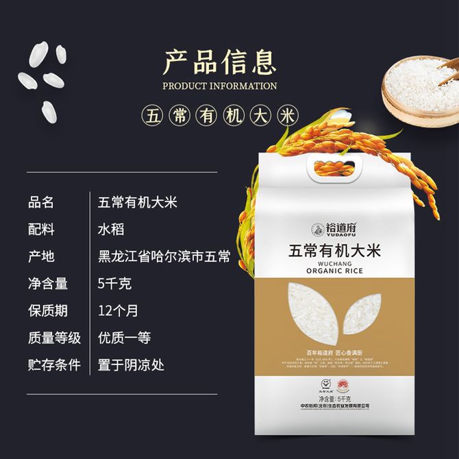 裕道府 五常有机大米5KG 东北大米核心产区 稻米原香纤长饱满色泽润盈