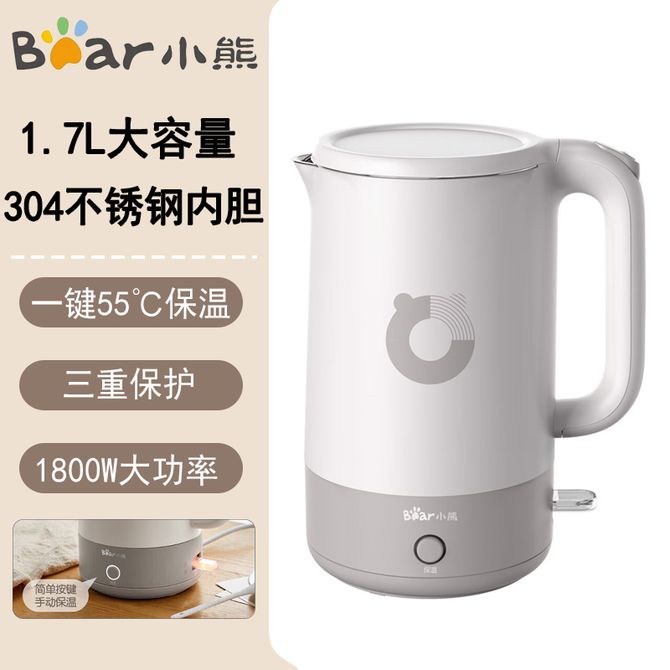 小熊/Bear 电热水壶 1.7L大容量 自动断电恒温壶 304不锈钢内胆 一键55℃长效保温 ZDH-Q17U7 一键55℃长效保温;1.7L大容量;304不锈钢无缝内胆; 兑换价格 5200 里程 会员卡别 终身白金卡 白金卡 金卡 银卡 普通卡 儿童卡 服务 由 小枫叶专营店 发货并提供售后 颜色: 灰色 购买数量: 件 库存件 配送地址: 立即购买 加入购物车 成功添加到购物车 关闭 购物车共有 种商品 总金额为: