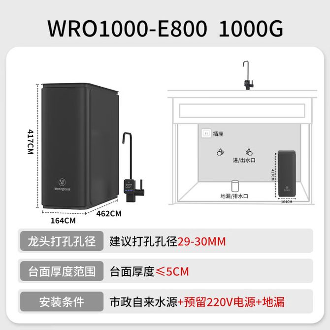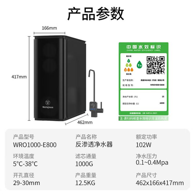 西屋/Westinghouse WRO1000-E800 净水器家用 厨下式净水机 净饮机直饮机过滤器1000G大通量陶氏RO反渗透弱碱矿物质水0陈水厨房 【母婴级标准】 杜邦RO膜 远超一级水效 总净水量6000L 实时监控 兑换价格 211100 里程 会员卡别 终身白金卡 白金卡 金卡 银卡 普通卡 儿童卡 服务 由 弘济家电 发货并提供售后 颜色: 其他 购买数量: 件 库存件 配送地址: 立即购买 加入购物车 成功添加到购物车 关闭 购物车共有 种商品 总金额为: