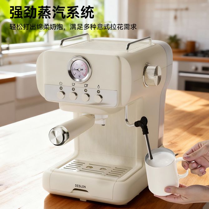 德世朗(DESLON) 咖啡机家用高颜值意式压力咖啡机低压预浸泡复古表盘设计办公家用皆宜 单双杯定量萃取 复古表盘设计 强劲蒸汽系统 20bar水泵泵压 兑换价格 18700 里程 会员卡别 终身白金卡 白金卡 金卡 银卡 普通卡 儿童卡 服务 由 北京致诚博雅贸易有限公司 发货并提供售后 颜色: 其他 购买数量: 件 库存件 配送地址: 立即购买 加入购物车 成功添加到购物车 关闭 购物车共有 种商品 总金额为: 组合销售 产品介绍 产品规格 售后服务 产品咨询 发现好货 柏翠/Petrus 小白醒醒 浓缩意式咖啡机 1.2L可拆卸水箱 稳压萃取 家用小型半自动蒸汽打奶泡 26100 里程 磨客 咖啡机家用意式小型半自动花式浓缩咖啡蒸汽打奶泡一体泵压式高压萃取多功能奶泡机MK-382米白色 11500 里程 东菱/Donlim 触控咖啡机研磨一体机 智能恒温美式全自动滴滤式咖啡壶DL-KF1061 17300 里程 小熊/Bear 咖啡机美式 家用滴漏式全自动迷你小型咖啡粉泡茶两用办公室煮茶机KFJA06K1 4400 里程 东菱Donlim 触控研磨一体咖啡机 智能恒温美式全自动滴滤式咖啡壶DL-KF1061 19200 里程
