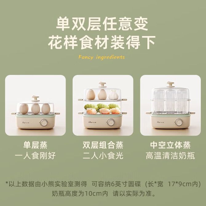 组合销售 产品介绍 产品规格 售后服务 产品咨询 发现好货 小熊/Bear 煮蛋器 蒸蛋器 单双层家用多功能高温保护早餐鸡蛋羹迷你电蒸锅 ZDQ-D12R3 2000 里程 小熊/Bear 蒸蛋器 ZDQ-D12R3 暖灰色 煮蛋器多功能家用小型双层非自动断电煮蛋神器 2900 里程 小熊/Bear 煮蛋器蒸蛋器单双层家用高温断电迷你早餐鸡蛋羹蒸鸡蛋器蒸蛋机炖蛋器便携式电蒸锅ZDQ-B14Q1 2200 里程 小熊/Bear 煮蛋器蒸蛋器单双层家用高温断电迷你早餐器蒸蛋机炖蛋器蒸蛋锅便携式电蒸锅ZDQ-B14Q1带不锈钢蒸碗 2600 里程 小熊/Bear 煮蛋器 小型家用可定时不锈钢蒸蛋器自动断鸡蛋羹迷你电蒸锅ZDQB07C3 3500 里程