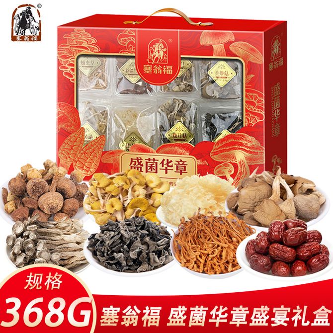 塞翁福 盛菌华章盛宴礼盒368g 南北干货山珍干菌食用菌菇礼盒 煲汤炒菜食材 佳节送礼 配置:盛菌华章盛宴礼盒368g;无根木耳55g、榆黄蘑20g、银耳花20g、鹿茸菇40g、新疆红枣120g、姬松茸48g、真姬菇40g、蛹虫草25g 兑换价格 4800 里程 会员卡别 终身白金卡 白金卡 金卡 银卡 普通卡 儿童卡 服务 由 壮乡优品生活馆 发货并提供售后 规格: 礼盒 购买数量: 件 库存件 配送地址: 立即购买 加入购物车 成功添加到购物车 关闭 购物车共有 种商品 总金额为: