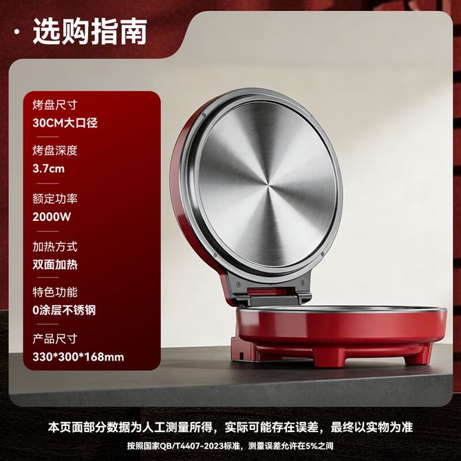 组合销售 产品介绍 产品规格 售后服务 产品咨询 发现好货 苏泊尔(SUPOR)电饼铛家用 双面加热煎饼铛煎烤机三明治机烙饼锅早餐机25mm加深烤盘火力可调JD31A847A 6500 里程 苏泊尔(SUPOR) 电饼铛 自动煎烤机 电火锅多功能 加大加深60mm双加热烙饼 锅面煎饼电饼档 两档火力 JT30A818 5700 里程 苏泊尔(SUPOR)电饼铛家用双面加热电饼档煎烤机烙饼机双面悬浮加热早餐机三明治机JJ30A648-Q 5400 里程 美的(Midea)电饼铛家用智能双面加热煎烤机烙饼机蛋饼机薄饼机煎饼烙饼锅JHN30F 4800 里程 奥克斯 电饼铛家庭用新款双面加热加大尺寸加深烤盘烙饼专用锅自动控温断电煎饼锅早餐机 5200 里程