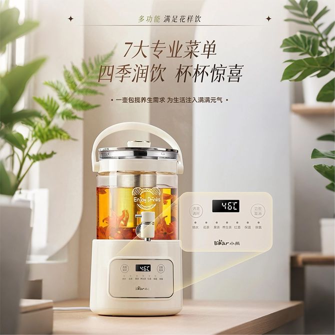 组合销售 产品介绍 产品规格 售后服务 产品咨询 发现好货 九阳/Joyoung 养生壶1.5L茶具电茶壶煮茶壶花茶壶玻璃煮茶器煎药壶中药锅药膳电水壶烧水壶 3900 里程 美的/Midea 养生壶 1.5L家用多功能小型全自动办公室烧水壶加厚玻璃煮茶热水壶 MK-YS15P201 4200 里程 美的/Midea 养生壶 1.5L全自动电热水壶 24h预约12小时智能恒温 14大功能11档控温 花茶壶煮茶器MK-Y12Q 3500 里程 小熊/Bear 养生壶电热水壶煮茶器烧水壶家用1.5L煮茶壶全自动保温多功能电水壶花果茶壶YSH-C15W1 3900 里程 小熊/Bear 养生壶煮茶器烧水壶煮茶壶多段保温迷你玻璃花茶壶智能恒温电热水壶1.5L YSH-D15T3米黄色 4600 里程