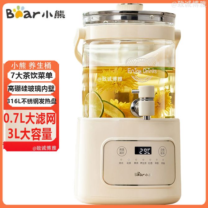 小熊/Bear 养生壶3L大容量高硼硅玻璃养生桶花茶桶花茶壶分体式设计多功能乐饮 0.7L大滤网 3L大容量 316L不锈钢发热盘 高硼硅玻璃内壁 7大茶饮菜单 兑换价格 13800 里程 会员卡别 终身白金卡 白金卡 金卡 银卡 普通卡 儿童卡 服务 由 北京致诚博雅贸易有限公司 发货并提供售后 颜色: 其他 购买数量: 件 库存件 配送地址: 立即购买 加入购物车 成功添加到购物车 关闭 购物车共有 种商品 总金额为: