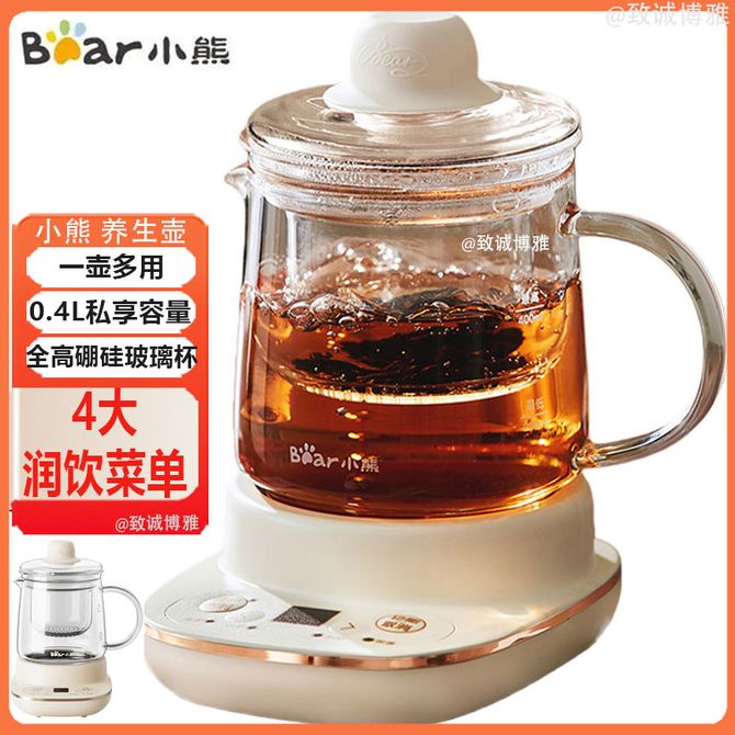 小熊/Bear 养生壶全玻璃养生杯一壶多用办公养生家用煮茶器花茶壶 一壶多用 8h保温 9.5h预约 4大润饮菜单 0.4L私享容量 全高硼硅玻璃杯 兑换价格 5700 里程 会员卡别 终身白金卡 白金卡 金卡 银卡 普通卡 儿童卡 服务 由 北京致诚博雅贸易有限公司 发货并提供售后 颜色: 其他 购买数量: 件 库存件 配送地址: 立即购买 加入购物车 成功添加到购物车 关闭 购物车共有 种商品 总金额为: