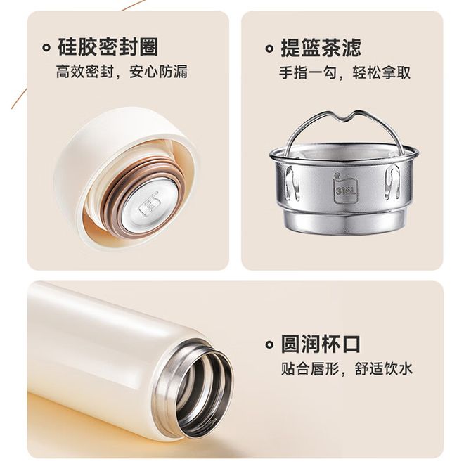 组合销售 产品介绍 产品规格 售后服务 产品咨询 发现好货 爱奇屋aichiw思悦保温杯AI-D97 1500 里程 希乐(cille) 领先保温杯XB-22172女生316水杯儿童上学专用大容量杯子冬季男款学生水壶500ml 2400 里程 爱奇屋 保温杯随行口袋杯 高颜值清新小巧水杯子280ml AI-D158 1100 里程 德铂(Debo) 480ml托马斯弹跳盖304不锈钢保温杯DEP-719 1500 里程 德铂Debo保温杯304不锈钢内胆双层茶杯白色DEP-719 1400 里程