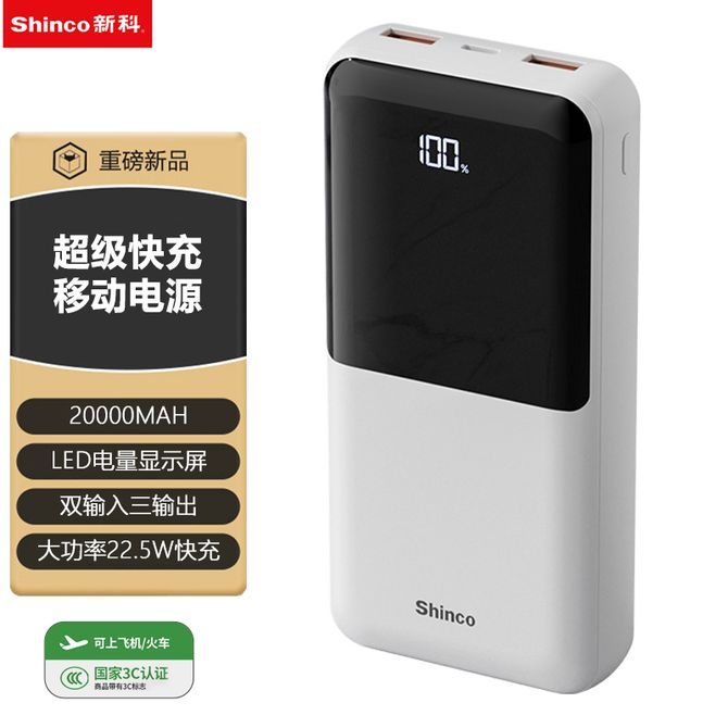 新科/Shinco 【国家3C认证】20000mAh大容量超级快充移动电源LED电量显示 3C认证 可上飞机 机身有3C标识 兑换价格 5700 里程 会员卡别 终身白金卡 白金卡 金卡 银卡 普通卡 儿童卡 服务 由 贝洛美智能科技精品馆 发货并提供售后 电池容量: 10001mAh-20000mAh 颜色: 白色 购买数量: 件 库存件 配送地址: 立即购买 加入购物车 成功添加到购物车 关闭 购物车共有 种商品 总金额为: 组合销售 产品介绍 产品规格 售后服务 产品咨询 发现好货 ZNNCO 充电宝20000毫安时超薄小巧迷你自带线大容量快充移动电源便携苹果华为小米2万mAh手机 4200 里程 睿量/Remax 磁吸无线充电宝 Magsafe快充 5000mAh超薄小巧便携移动电源 手机背夹迷你移动电源 适用于苹果华为小米手机 RPP-107 4600 里程 纽曼(Newmine) 自带四线充电宝 3C认证 LED智能数显10000毫安移动电源 AL03 经典黑 3000 里程 雷摄 T68S【3C认证可上飞机】充电宝10000毫安 移动电源 22.5W快充丨1万毫安丨多口输出 1700 里程 纽曼 AL35大容量10000毫安时 22.5W超级快充充电宝 超薄小巧便携迷你 3700 里程