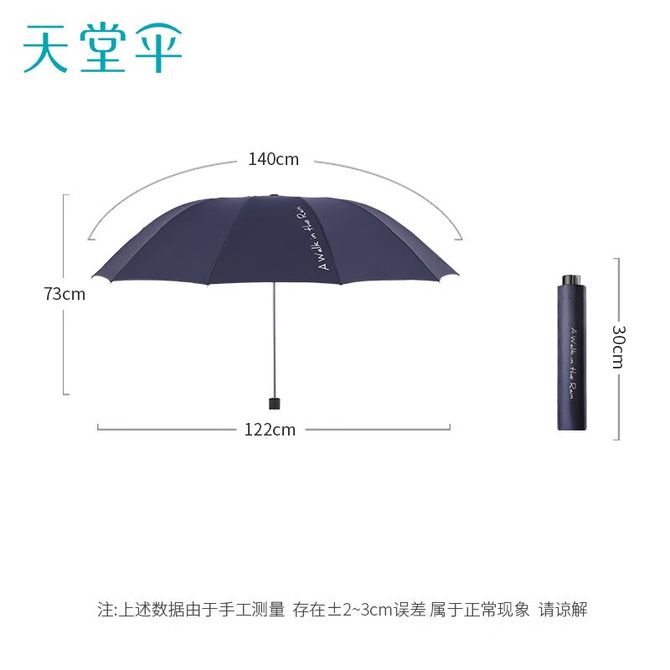 组合销售 产品介绍 产品规格 售后服务 产品咨询 发现好货 天堂伞 加大雨伞三折 晴雨两用商务伞10骨大雨伞男女 30721EJDX岩石蓝 1600 里程 雨景/rainscape 简约十骨大号男士三折雨伞 折叠伞 男女商务晴雨伞65CM*10骨 2200 里程 雨景/rainscape 男士全自动商务雨伞 十骨全自动晴雨伞 折叠商务伞 两用双人超大加固防风三折伞 4400 里程 美度(MAYDU) 三折自动雨伞环扣便挂手柄加固防风简约清新配色反向折叠雨伞 2800 里程 天玮伞业/Tianwei umbrella 雨伞 六折防晒防紫外线太阳伞 迷你便携小巧遮阳伞 1500 里程