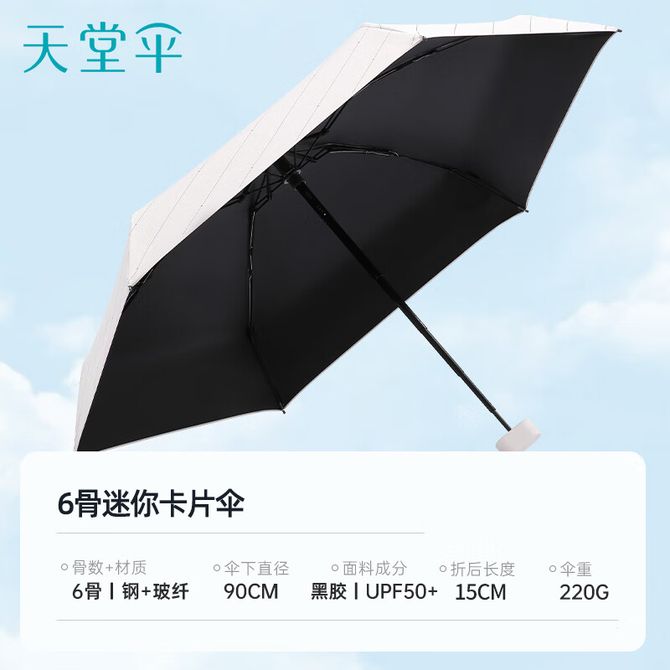 天堂 防晒晴雨伞五折 太阳伞(50145E) 周一到周五 工作日发货 兑换价格 2900 里程 会员卡别 终身白金卡 白金卡 金卡 银卡 普通卡 儿童卡 服务 由 元素家居家纺专卖店 发货并提供售后 颜色: 白色 粉红 浅蓝色 深蓝色 购买数量: 件 库存件 配送地址: 立即购买 加入购物车 成功添加到购物车 关闭 购物车共有 种商品 总金额为: 组合销售 产品介绍 产品规格 售后服务 产品咨询 发现好货 天堂伞 加大雨伞三折 晴雨两用商务伞10骨大雨伞男女 30721EJDX岩石蓝 1600 里程 雨景/rainscape 简约十骨大号男士三折雨伞 折叠伞 男女商务晴雨伞65CM*10骨 2200 里程 雨景/rainscape 男士全自动商务雨伞 十骨全自动晴雨伞 折叠商务伞 两用双人超大加固防风三折伞 4400 里程 美度(MAYDU) 三折自动雨伞环扣便挂手柄加固防风简约清新配色反向折叠雨伞 2800 里程 天玮伞业/Tianwei umbrella 雨伞 六折防晒防紫外线太阳伞 迷你便携小巧遮阳伞 1500 里程