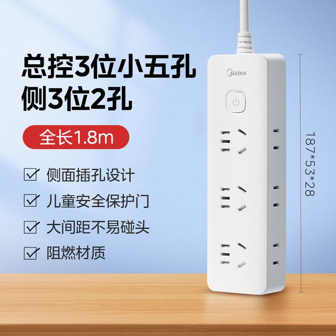 美的/Midea 排插 升级多位侧插8合1面板插排插线板排插拖线板接线板排插 (详情共用,该款为1.8m)升级侧插,8合1面板 升级纤芯粗度1mm² 升级750℃阻燃 兑换价格 1600 里程 会员卡别 终身白金卡 白金卡 金卡 银卡 普通卡 儿童卡 服务 由 广西桂福礼供应链管理有限公司 发货并提供售后 插排线: 有线 插位: 6插位 购买数量: 件 库存件 配送地址: 立即购买 加入购物车 成功添加到购物车 关闭 购物车共有 种商品 总金额为: 组合销售 产品介绍 产品规格 售后服务 产品咨询 发现好货 小米 多功能 3孔3USB插口 2A快充 防儿童使用安全设计插口电源插线板 白色 3000 里程 飞利浦/Philips 新国标分控插座/插线板/插板/接线板/拖线板 分控4位1.8米SPB3140WA/93 1800 里程 飞利浦/Philips 排插 1.8米总控插座 6位5孔插排 SPB2163WA/93 1500 里程 公牛(BULL) 插座新国标高品质插线3位总控全长1.8米安全保护门插线板插排排插接线板拖线板 1200 里程 公牛(BULL) 新国标插座4位总控开关全长1.8米GN-607 1600 里程