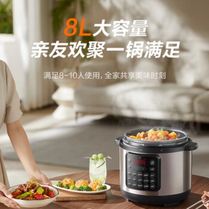 苏泊尔 压力锅智能预约高压锅 8L容量 SY-80YC8001 多功能8L容量压力锅智能预约高压锅 兑换价格 26100 里程 会员卡别 终身白金卡 白金卡 金卡 银卡 普通卡 儿童卡 服务 由 锦宁家电馆 发货并提供售后 颜色: 其他 购买数量: 件 库存件 配送地址: 立即购买 加入购物车 成功添加到购物车 关闭 购物车共有 种商品 总金额为: 组合销售 产品介绍 产品规格 售后服务 产品咨询 发现好货 苏泊尔(SUPOR)电压力锅 6升大容量 智能触控 球釜双胆 开盖收汁 一键排压 SY-60YC8001Q 高压锅 16900 里程 美的/Midea 电压力锅家用5L大容量多功能高压锅双胆一键收汁智能预约不粘电高压锅电饭锅煮粥煲汤锅 一锅双胆【一键收汁入味】 YL50M1-702 10600 里程 苏泊尔(SUPOR) 5L电压力锅家用电高压锅双胆高压电饭锅煮饭智能预约 SY-50YC8186 11300 里程 美的/Midea 电压力锅 【一锅双胆】5L全自动家用智能预约 上蒸下煮 不粘双胆煲汤炖肉 YL50Q3-451 10900 里程 美的/Midea 电压力锅 高压锅家用电压力煲智能预约电饭煲大容量多功能定时预约电饭煲3-8人单胆旋钮款4L MY-E4809 8700 里程