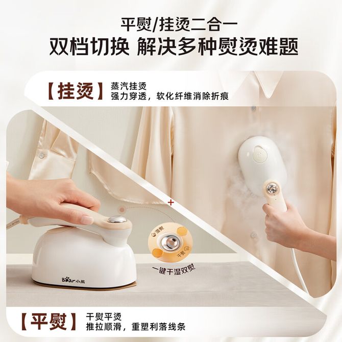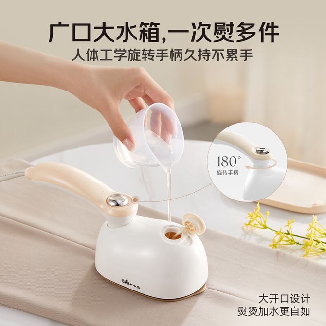 组合销售 产品介绍 产品规格 售后服务 产品咨询 发现好货 艾贝丽 手持挂烫机熨烫机 平挂两用家用电器便携蒸汽电熨斗烫衣机时尚熨衣机ABL-G212白色 5200 里程 小熊/Bear 挂烫机家用熨斗小型熨烫机家用手持挂烫机蒸汽熨斗电熨斗 GTJ-D10M1 4000 里程 苏泊尔/Supor 挂烫机 手持电熨家用旅游出差便携式高温除菌小型熨烫机喷气式衣物护理机 EGH-923A 3800 里程 海尔 手持挂烫机 家用熨烫机蒸汽熨斗 便携式烫衣服神器 HY-GW2502W 4800 里程 小米 米家增压蒸汽挂烫机 家用手持立式挂烫 即熨即穿 2L大水箱 26900 里程
