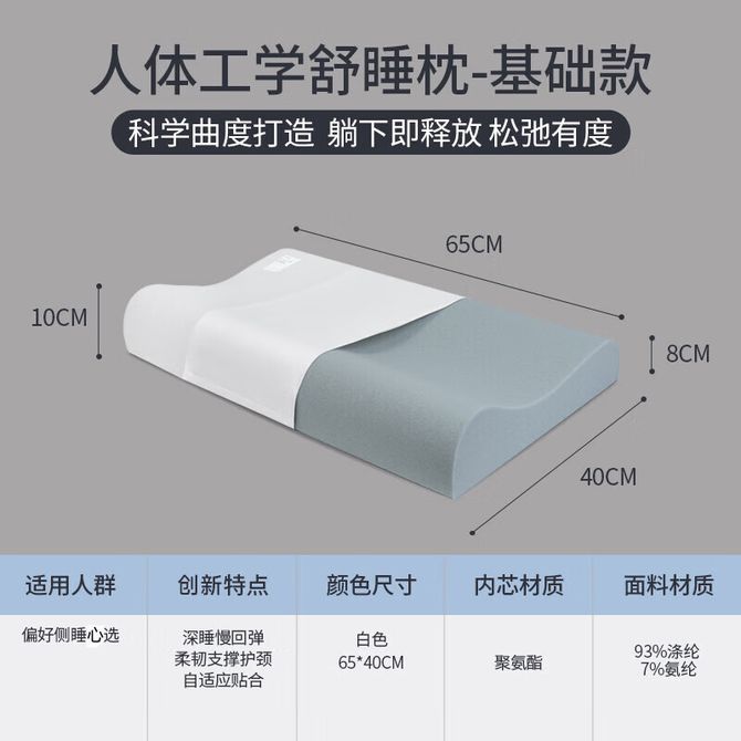 佳奥/Jago 人体工学舒睡枕A 记忆棉护颈椎 家用助睡眠慢回弹舒睡枕 产品尺寸:65*40*8-10cm;科学曲度打造 ,躺下即释放松弛有度;45° 贴合颈椎,135°感枕型弧度,拒绝头部束缚; 8-10cm双枕高满足个性化睡眠需求,大枕型设计让翻身更畅快 兑换价格 5500 里程 会员卡别 终身白金卡 白金卡 金卡 银卡 普通卡 儿童卡 服务 由 北京鹏达博瑞商贸有限公司 发货并提供售后 颜色: 其他 购买数量: 件 库存件 配送地址: 立即购买 加入购物车 成功添加到购物车 关闭 购物车共有 种商品 总金额为: