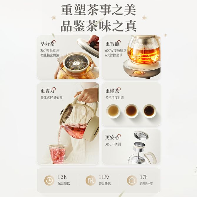 小熊/Bear 煮茶器煮茶壶喷淋式蒸茶壶养生壶小型迷你养生烧水壶 360°喷泉蒸淋微孔精密隔渣 600W变频精萃 6大智控菜单 兑换价格 7000 里程 会员卡别 终身白金卡 白金卡 金卡 银卡 普通卡 儿童卡 服务 由 聚品惠家电生活馆 发货并提供售后 颜色: 其他 购买数量: 件 库存件 配送地址: 立即购买 加入购物车 成功添加到购物车 关闭 购物车共有 种商品 总金额为: