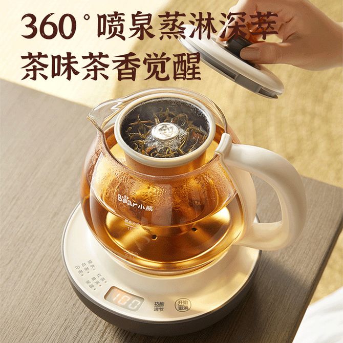 小熊/Bear 煮茶器煮茶壶喷淋式蒸茶壶养生壶小型迷你养生烧水壶 360°喷泉蒸淋微孔精密隔渣 600W变频精萃 6大智控菜单 兑换价格 7000 里程 会员卡别 终身白金卡 白金卡 金卡 银卡 普通卡 儿童卡 服务 由 聚品惠家电生活馆 发货并提供售后 颜色: 其他 购买数量: 件 库存件 配送地址: 立即购买 加入购物车 成功添加到购物车 关闭 购物车共有 种商品 总金额为: 组合销售 产品介绍 产品规格 售后服务 产品咨询 发现好货 九阳/Joyoung 养生壶1.5L茶具电茶壶煮茶壶花茶壶玻璃煮茶器煎药壶中药锅药膳电水壶烧水壶 3900 里程 九阳/Joyoung 养生壶迷你玻璃花茶壶煮茶器 12大功能11档温度 电水壶热水壶烧水壶 1.5L DGD1506BQ 3900 里程 美的/Midea 养生壶 1.5L家用多功能小型全自动办公室烧水壶加厚玻璃煮茶热水壶 MK-YS15P201 4200 里程 美的/Midea 养生壶 1.5L家用养生壶全自动玻璃烧水壶24h预约烧水壶12小时防干烧保护智能恒温 MK-YS15P202 3700 里程 美的/Midea 养生壶 1.5L全自动电热水壶 24h预约12小时智能恒温 14大功能11档控温 花茶壶煮茶器MK-Y12Q 3500 里程