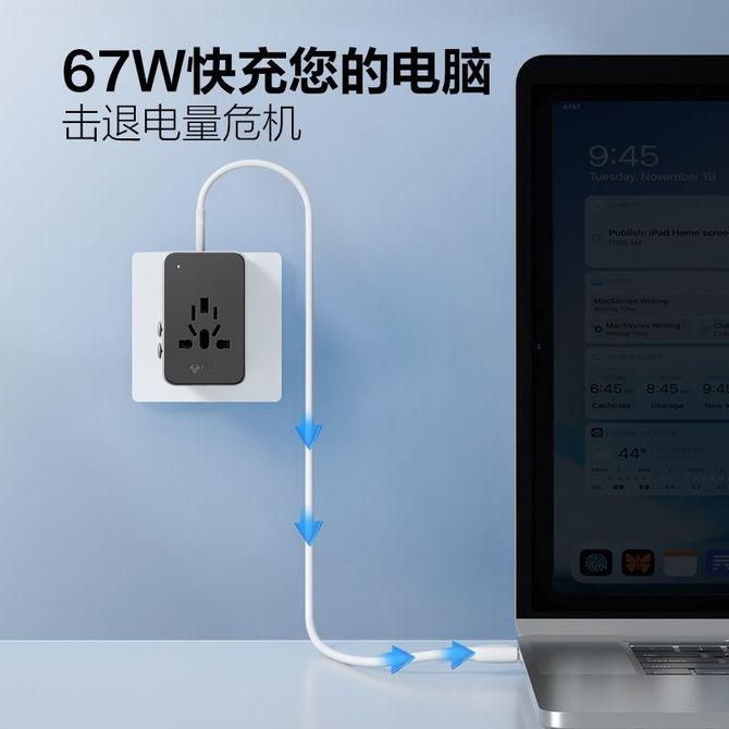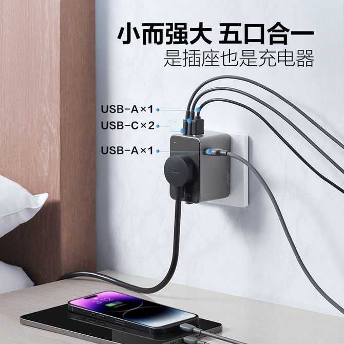 轻巧灵活 环球通用 67W氮化镓快充 五口合一 小巧便携