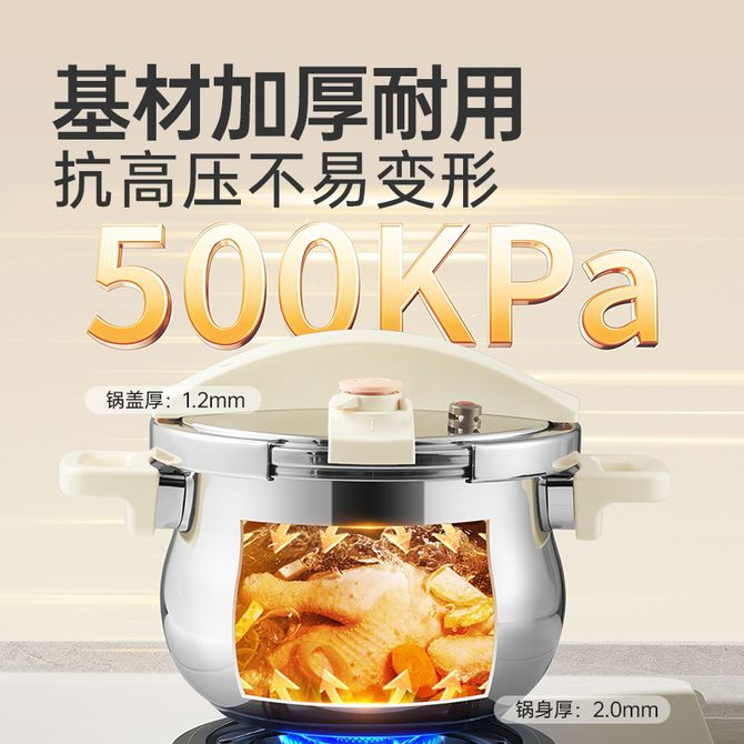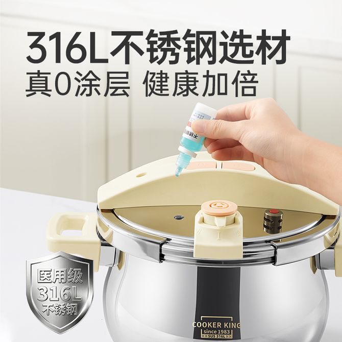 炊大皇(COOKER KING) 医用级316L不锈钢压力锅高压锅8重安全防护6L高压锅燃气电磁炉通用