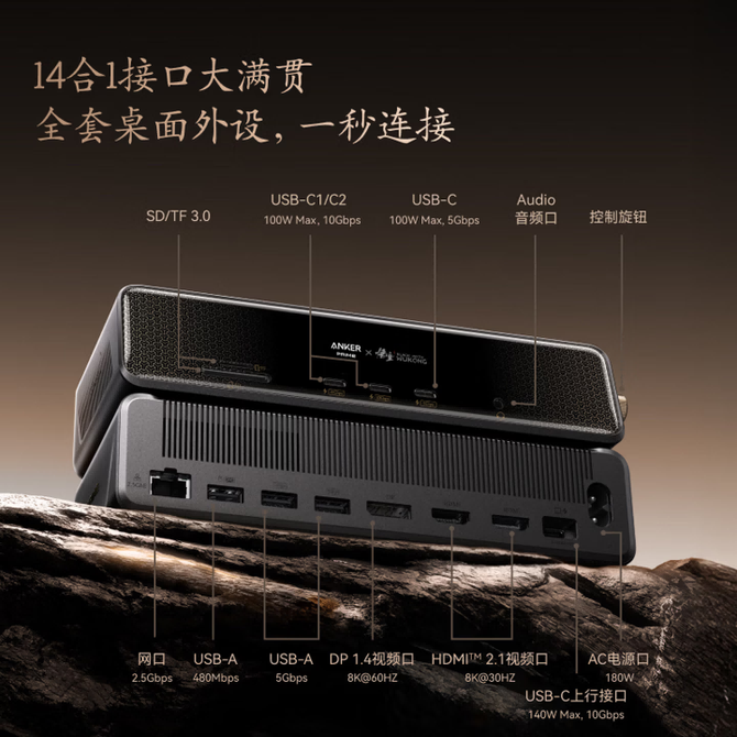 安克/Anker 心猿桌面充电站 160W多口快充充电器 电脑拓扩展坞14合一 HDMI8K投屏四屏异显 适用MacOS/Windows双系统 黑神话悟空联名款 原装正品 兑换价格 78300 里程 会员卡别 终身白金卡 白金卡 金卡 银卡 普通卡 儿童卡 服务 由 会天伦3C专营店 发货并提供售后 插口: 多口 购买数量: 件 库存件 配送地址: 立即购买 加入购物车 成功添加到购物车 关闭 购物车共有 种商品 总金额为: